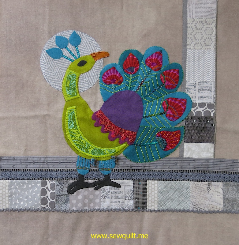 The class project was the peacock. I spent a few weeks getting the background and peacock appliqué pieces prepared.