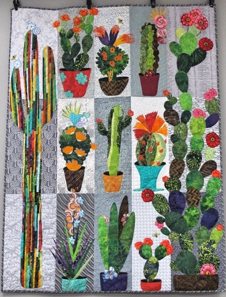 The class is using the pattern Collage Cactus Sampler by Laura Heine. Before class I pieced the background for the cactus collage. The background is abut 46" by 63".