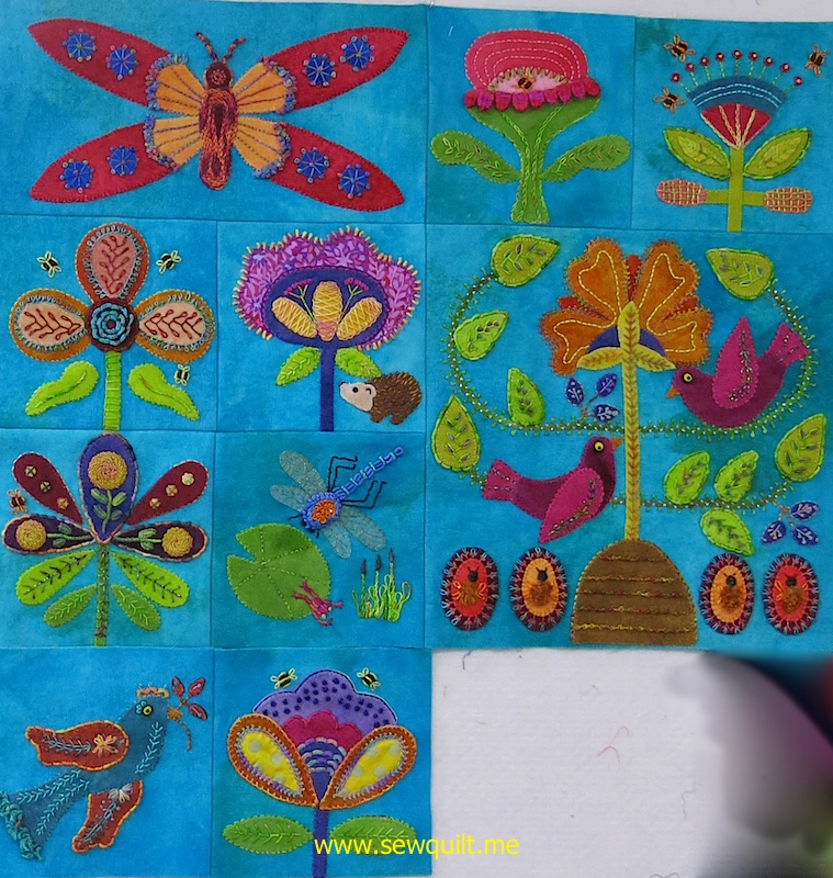 10 completed blocks sewn together.
