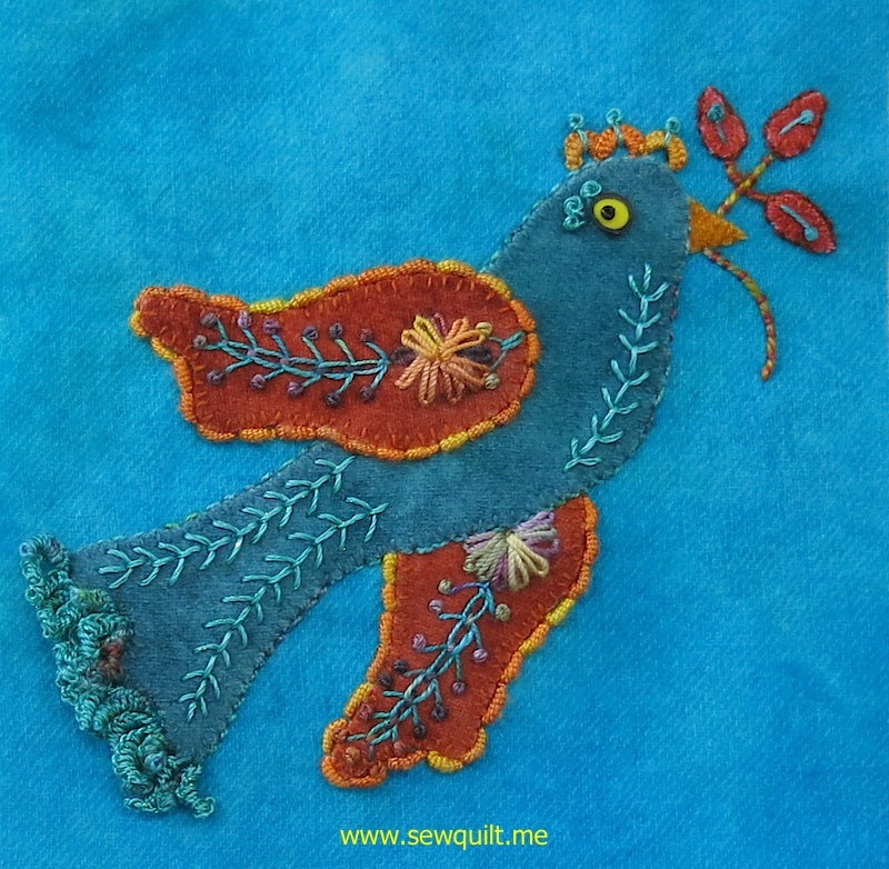 I always go a bit crazy stitching drizzle stitches. I really packed them in along the bird's tail.