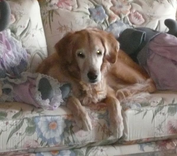 Bailey, Lucie's golden retriever, is not allowed on the furniture. Bailey seems to have forgotten the rules while Lucie is in the hospital.