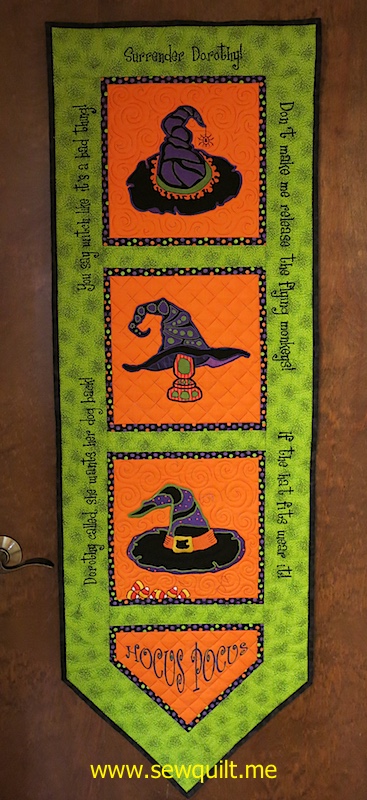 Sometimes it pays not to be the fastest student in a machine embroidery class. In January, I took a machine embroidery class with Claudia Dinnell of Claudia's Creations. I stayed after the end of the class so I could finish my Christmas "Boot'iful Bouquets. Claudia had some unfinished class project that she want to give away and I was lucky enough to get one of Claudia's halloween quilt.